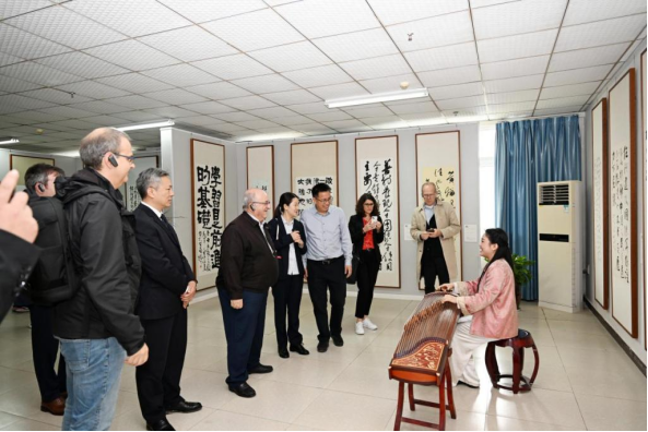 访问期间,伯努瓦·迪容一行观看了我院四川省级非遗文化“宕渠双竹连响舞”,欣赏了刘丽薇老师的古筝弹奏,并详细了解了我院非遗文化传承的发展情况。代表团感慨中华传统文化历史悠久,赞赏学校多年来为传承非遗文化所做的努力。