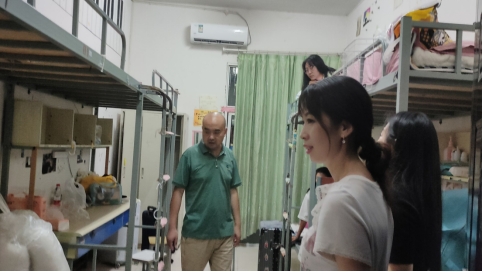 学院领导与老师们逐一走进新生宿舍与同学们进行了亲切的交流,从家乡特色到入学初体验,从对未来的规划愿景到眼下的生活点滴,从电线的规范使用到防火防盗的意识,展现出深切与细致的关怀。针对近期高温天气,提醒同学们要注意防暑防晒,遵守宿舍管理规定,避免出现安全问题,养成良好的卫生和生活习惯。同时鼓励同学们入校要尽快调整状态,适应新环境和新身份,珍惜学习时光,练就过硬本领,在新时代的舞台上砥砺奋进。