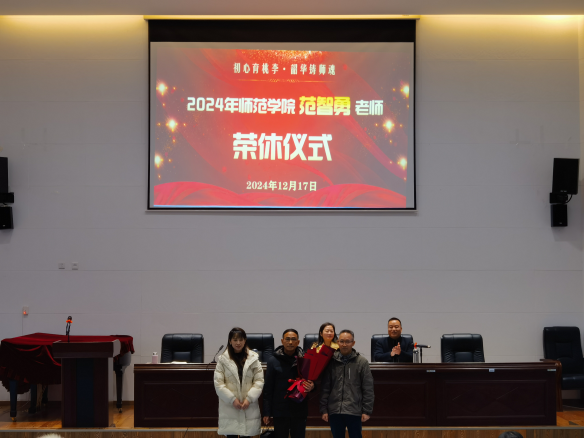 初心育桃李,韶华铸师魂。会议最后为范智勇老师举行了温馨的荣休仪式。范老师用认真严谨的态度、无私奉献的精神为校院发展贡献了自己的青春和智慧,彰显了高尚的师德风范和育人情怀。太阳成集团tyc234cc荣休活动让尊师重教文化持续弘扬,激励更多青年教师成为“经师”和“人师”相统一的“大先生”。