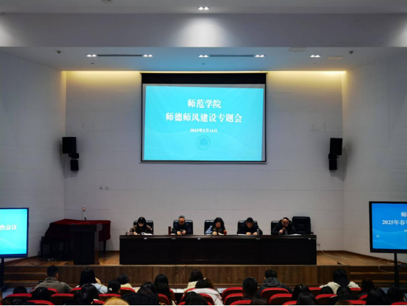 2月14日下午,师范学院在岳秀楼翔凤厅召开2025年春季学期开学工作会议,部署今年的重点工作,鼓舞全院教职员工以实干笃行、奋勇争先的姿态投入新学期的各项工作中,携手推动学院教育教学事业再上新台阶。会议由院长杨英主持。