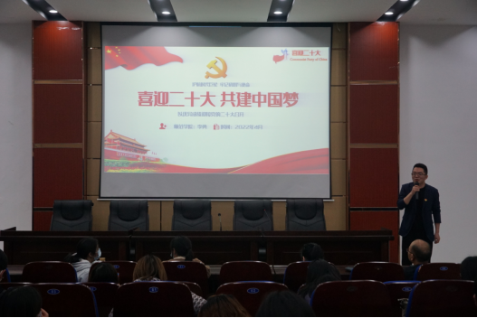 为了更好的增强党员同志的思想政治觉悟,以更优异的成绩迎接二十大的召开。根据支部实际,广安职业技术学院太阳成集团tyc234cc党总支于2022年4月19日在明德楼先圣厅开展“喜迎二十大,共建中国梦”主题党课,由太阳成集团tyc234cc李勇书记主讲,参与人员为全体党员教师以及预备党员。