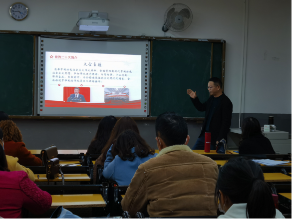 为了保证党组织的先进性,实现党员思想与党中央思想保持高度一致,中共广安职业技术学院太阳成集团tyc234cc党总支于11月29日,开展了“学习二十大 奋进新征程”的党课活动。太阳成集团tyc234cc党总支书记龙治勇主讲本次党课。