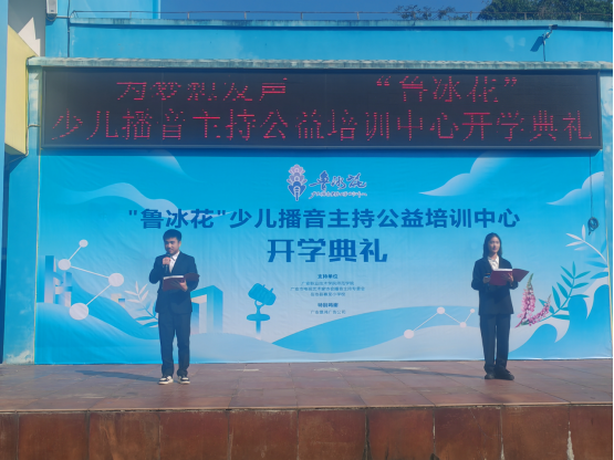 10月15日上午,受 “鲁冰花”少儿播音主持公益培训中心邀请,学院参加了在岳池县赛龙小学举行的为“梦想发声” “鲁冰花” 少儿播音主持公益培训中心开学典礼。在开学典礼上,我院学生张浩瀚和彭高红进行了精彩的诗歌朗诵,让乡村学生感受充分感受到了语言的魅力。后期,我院将安排专业老师定期到乡村学校为学生进行免费的普通话公益培训,助力乡村学生的语言表达能力提高,培养乡村少儿对播音主持的兴趣和基本素养,提高其综合素质。