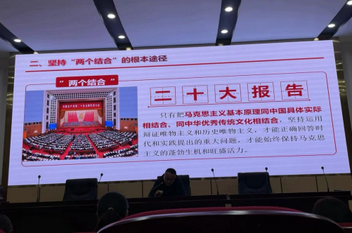 牛振宇围绕国内外形势新变化和实践新要求、坚持两个结合的根本途径、习近平新时代中国特色社会主义思想的主要内容和实现马克思主义中国化时代化新的飞跃等几个方面展开,要求大家要坚持不懈用习近平新时代中国特色社会主义思想凝心铸魂,全面系统深入把握这一重要思想的核心要义、精神实质、丰富内涵、实践要求,做到学思用贯通、知信行统一。
