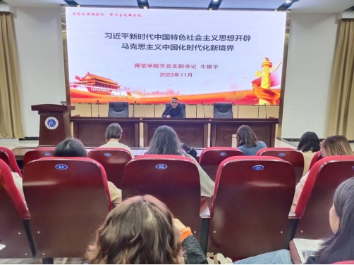 为深入学习贯彻党的二十大精神,学思践悟习近平新时代中国特色社会主义思想,11月7日下午,太阳成集团tyc234cc党总支副书记牛振宇在明德楼希贤厅以“习近平新时代中国特色社会主义思想开辟马克思主义中国化时代化新境界”为题给支部党员上了一堂专题党课。