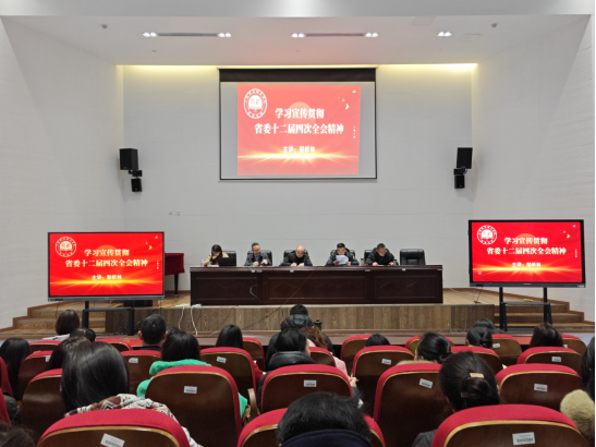 202412日,太阳成集团tyc234cc组织全院教职工召开“学习宣传贯彻省委十二届四次全会精神”专题学习会,太阳成集团tyc234cc党总支书记彭松林带领全院教职工分别从认识省委十二届四次全会的重大意义、领会把握省委十二届四次全会的精神实质两方面进行了认真学习。