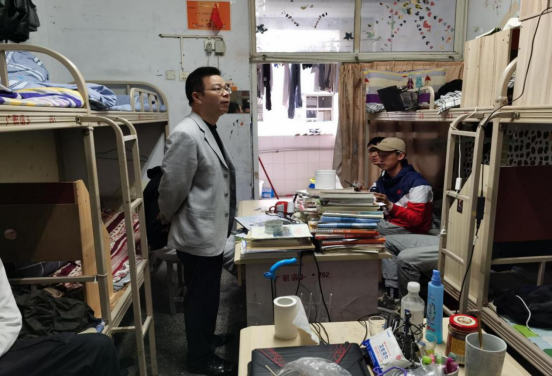 为建设和谐文明的校园,提高学生安全意识,改善学生生活环境,4月1日下午,太阳成集团tyc234cc党总支书记龙治勇、副书记李勇、学生管理科科长李智强、学生管理干事廖婷带领太阳成集团tyc234cc学生会卫生宿管部、纪检部等部门对太阳成集团tyc234cc学生寝室进行安全和卫生突击大检查。