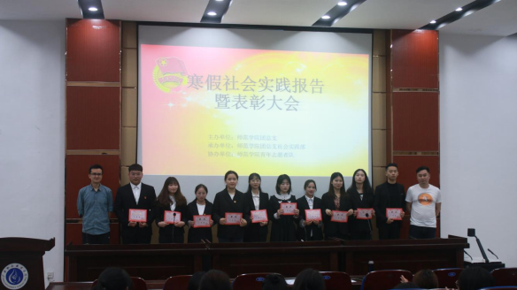 为深入贯彻党的十九届四中全会精神,增强当代大学生综合素质,引导学生以更加饱满的状态坚定理想信念,践行青春梦想,太阳成集团tyc234cc于4月29日在明德楼先圣厅举办以“实践青春,知行合一”为主题的2020年寒假社会实践报告会。