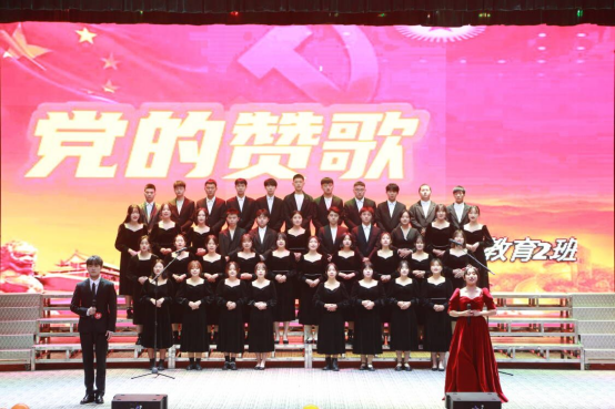 参加此次比赛的一共有19个班级,各班准备充分,服装整齐,精神饱满;朗诵节目形式多样、内容新颖,有《盛世中国梦》、《百年辉煌》、《永远跟党走》等节目。首先登上舞台的是21级小学教育1班,他们唱着洪亮的歌声登上舞台,同学们抑扬顿挫的朗诵,真情的演绎,赢得台下阵阵掌声;接下来上台的是21级英教1班,他们带来的《可爱的中国》内容丰富多彩,形式不拘一格,在诗歌朗诵中不仅带着歌曲,还穿插着古典舞。参赛的同学们全力投入,热情洋溢地展示了个人风采和集体魅力;他们用深情的朗诵带领我们一起领略祖国山河的壮美,一起经历祖国的沧桑和巨变,或温情脉脉或满腔热血或沉郁顿挫。经过激烈的角逐和周华银、毛西琼、雷霖、兰胡菁等专业评委老师认真的评比,21级小教3班带来的朗诵节目《青春中国》和2018级小教9班的《百年征程》以新颖编排和高质量的朗诵赢得一致好评,获得比赛一等奖;15名学生获得“优秀领诵”荣誉。