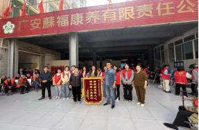 走进养老院,一部分志愿者忙着整理活动所需的服装和礼品,一部分志愿者就走到老人身边和老人聊天、帮他们剪指甲、捶背等,老人们脸上都洋溢着幸福的笑容。随后志愿者们向老人们奉献了精彩的文艺节目,唱歌、跳舞、互动游戏让老人们高兴得合不拢嘴。有一些老人也兴致勃勃的拿起话筒和志愿者们一起唱起来。活动结束后,蘇福养老院的工作人员向太阳成集团tyc234cc献上了锦旗。