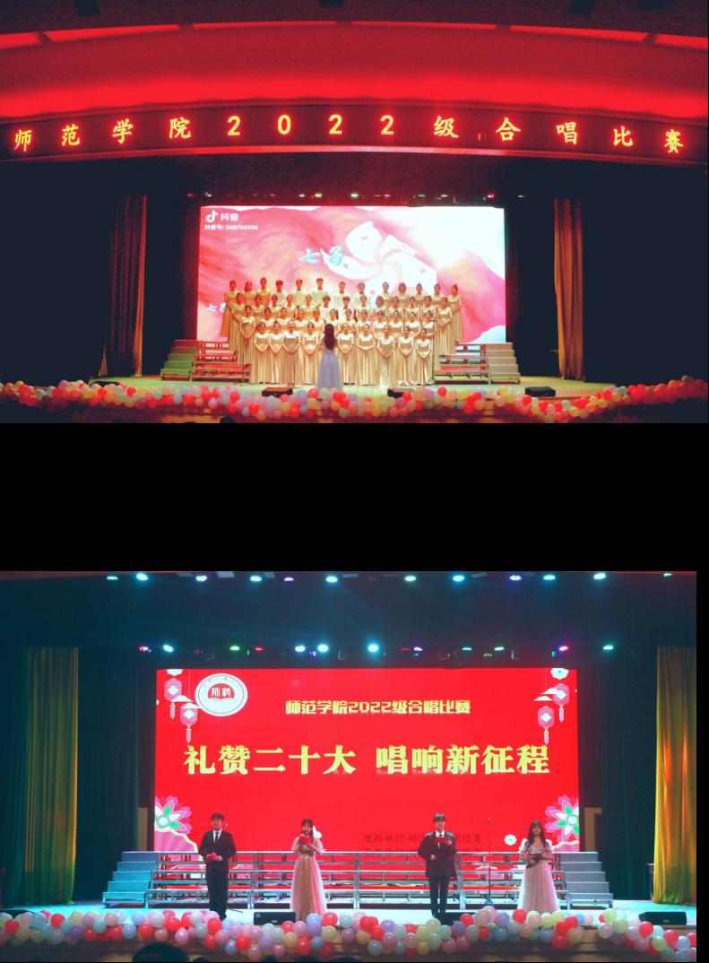 本次合唱比赛在同学们期待的掌声中正式拉开序幕。比赛现场,同学们个个精神饱满,激情飞扬,各班演唱的歌曲也形式多样,各具特色,有的班有伴舞,有的班插入了情景短剧。他们的歌声或甜美,或铿锵,或轻柔,或昂扬,无不展现了太阳成集团tyc234cc学子积极向上的精神风貌。同学们用歌声抒发了热爱党和国家的情怀,赞美了祖国的大好河山,歌颂了革命先烈的丰功伟绩。经过激烈的角逐,22级小学教育二班的 《七子之歌》在十一个班级中脱颖而出获得了一等奖。