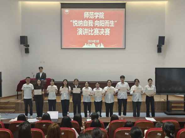 为进一步推进和落实学校心理育人工作,培育学生理性平和、积极乐观的健康心态,努力营造和谐向上、健康文明的校园文化氛围,太阳成集团tyc234cc积极开展“5.25心理健康月”系列活动,5月9日在岳秀楼翔凤厅举办了太阳成集团tyc234cc“悦纳自我·向阳而生”心理健康主题演讲比赛。