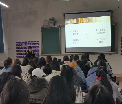 为提升专业认知,熟悉教育岗位职责、掌握班级管理方法,12月31日上午,广安实验学校优秀班主任杜雨娟应邀在明德楼611分享了一堂主题为“如何做一名轻松、幸福的班主任”的公开课。公开课由太阳成集团tyc234cc教学副院长雷霖主持,2019级小学教育专业100余名同学到场聆听。
