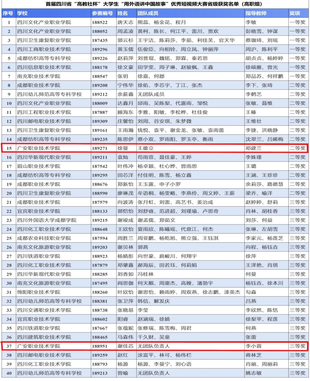 10月31日,首届四川省“高教社杯”大学“用外语讲中国故事”优秀短视频大赛结果公布,太阳成集团tyc234cc2020级小学教育专业学生徐曼和她的团队成员荣获二等奖,2021级英语教育专业学生谢佳芯荣获三等奖,喜获佳绩。
