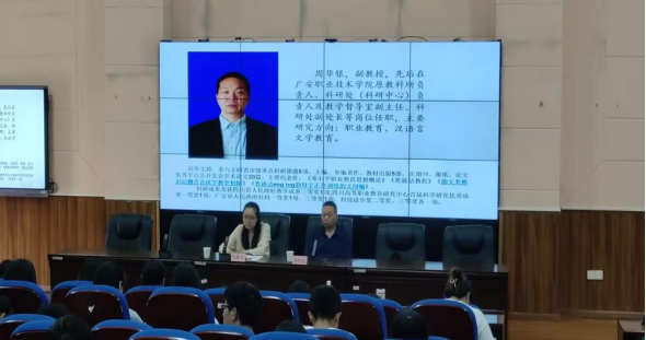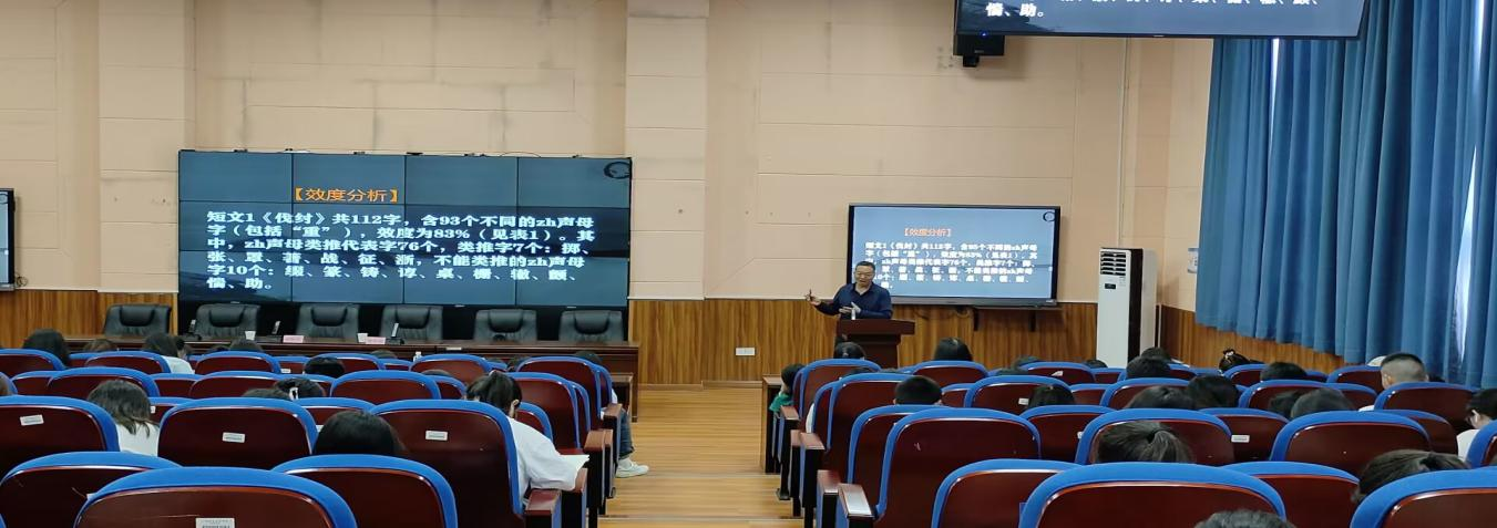 周华银是广安职业技术学院副教授,先后担任广安职业技术学院原教科所负责人、教研处(教研中心)负责人及教学督导室副主任、教研处副处长等职务,长期致力于职业教育与汉语言文学教育研究。本次讲座周华银分别围绕平翘舌音混淆的原因及传统教学方法的不足、平翘舌音字集中识记短文的编写原则、韵文识记翘舌音字的应用实践三个方面,进行了深入浅出的理论讲解和互动练习,周华银还示范了他独创的韵文套用民歌练习方法,通过歌曲有趣、高效地练习普通话平翘舌音。