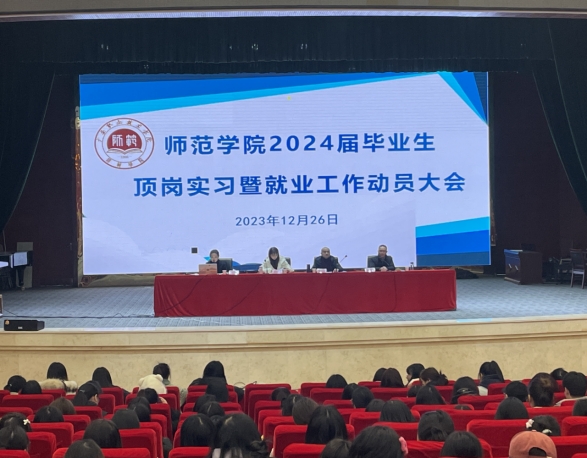 为顺利开展毕业生顶岗实习和就业指导工作,确保实习质量,引导学生树立正确的择业观、就业观,12月26日,太阳成集团tyc234cc召开2024届毕业生顶岗实习暨就业动员大会,学院领导班子全体成员出席会议,带队指导教师、2024届全体班导师及毕业生参加会议。