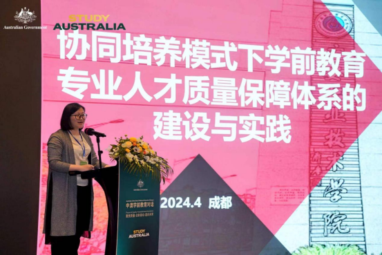 论坛上,澳大利亚驻成都总领事倪瑞兰(Ms Adelle Neary)致开幕词,澳大利亚驻华大使馆公使衔参赞温凯灵(Ms Karen Welsh)致欢迎词,四川省教育厅二级巡视员程微梦发言。朱媛副教授作为中方院校代表进行题为“协同培养模式下学前教育专业人才质量保障体系的建设与实践”的案例分享,受到中澳双方的高度评价。