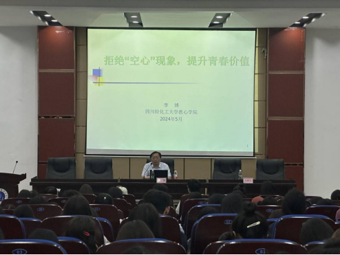 本次讲座以“拒绝‘空心’”现象,提升青春价值”为主题,由四川轻化工大学李博教授主讲。李教授结合工作与生活实际,用鲜活生动的案例和专业的心理健康知识,从当代大学生心理健康现状,“空心病”的定义、表现形式、形成原因等方面,分析“空心病”问题并提出如何摆脱“空心病”的策略。师生通过观看视频、交流互动等环节积极参与,讲座现场气氛热烈,取得了良好效果。