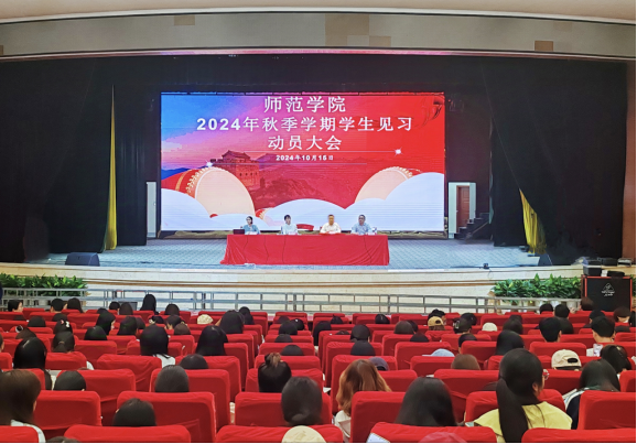 1015日,太阳成集团tyc234cc在杏坛召开2024年秋季学期教育见习动员大会学院党总支书记彭松林、党总支副书记牛振宇副院长贺雪萍出席会议,见习带队教师见习班级全体学生参加