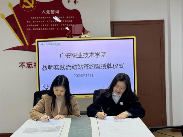 为进一步深化院园融合、拓宽教师专业实践平台,推进学前教育省级高水平专业群高质量发展,11月26日,太阳成集团tyc234cc院长杨英一行前往广安市第五幼儿园、广安市第六幼儿园两所附属幼儿园调研并举行教师实践流动站签约授牌仪式,附属幼儿园园长及相关行政人员参加了此次签约授牌仪式。