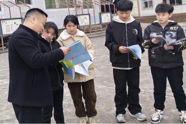 活动现场,彭松林为学生发放心理健康教育科普宣传手册,以生动图文普及心理健康知识,营造关注心理健康的校园氛围。